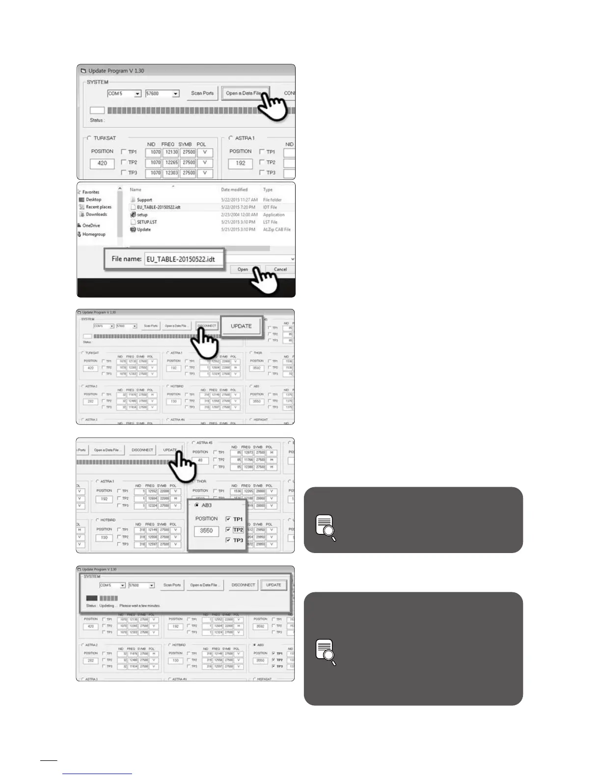Vérifiez le satellite et TP, pour mettre à jour et