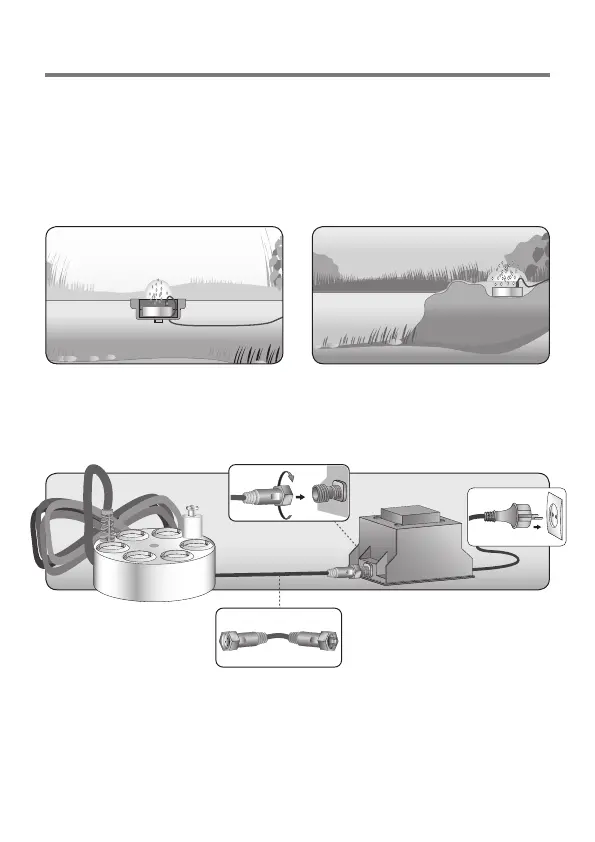Er zijn twee mogelijkheden om de FOGSTAR 600 te installeren: zwemmend of statisch (zie afb.). Plaats eerst