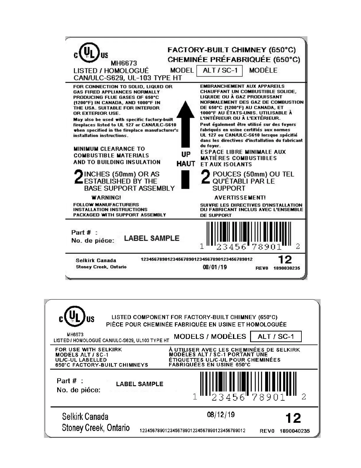 Selkirk SC-1 - Étiquettes de Certification