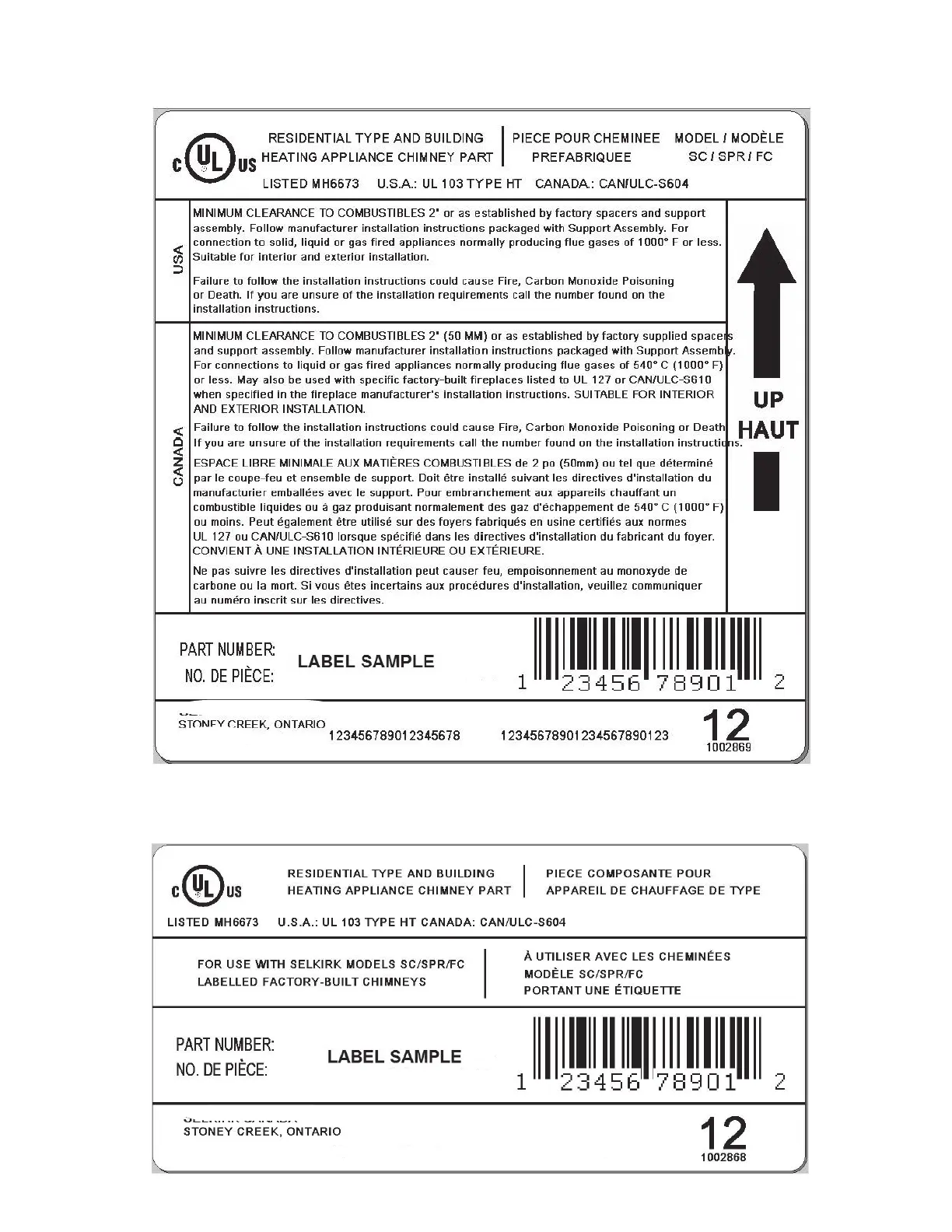 Selkirk SUPERVENT SC - Étiquettes de Certification