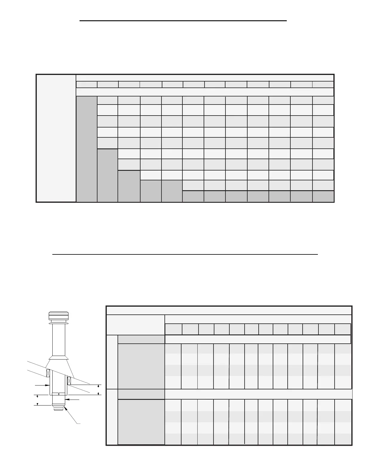 Le tableau suivant est pour vous assister dans la détermination de la hauteur minimum de cheminée au-dessus du toit. Vous aurez peut-être besoin d’ajouter