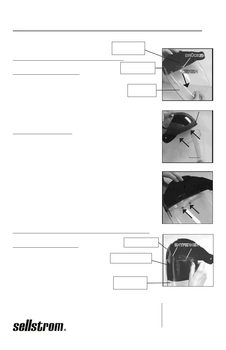 1. Die Sichtscheibe an den Seiten nach OBEN und IN die Stirnabdeckung