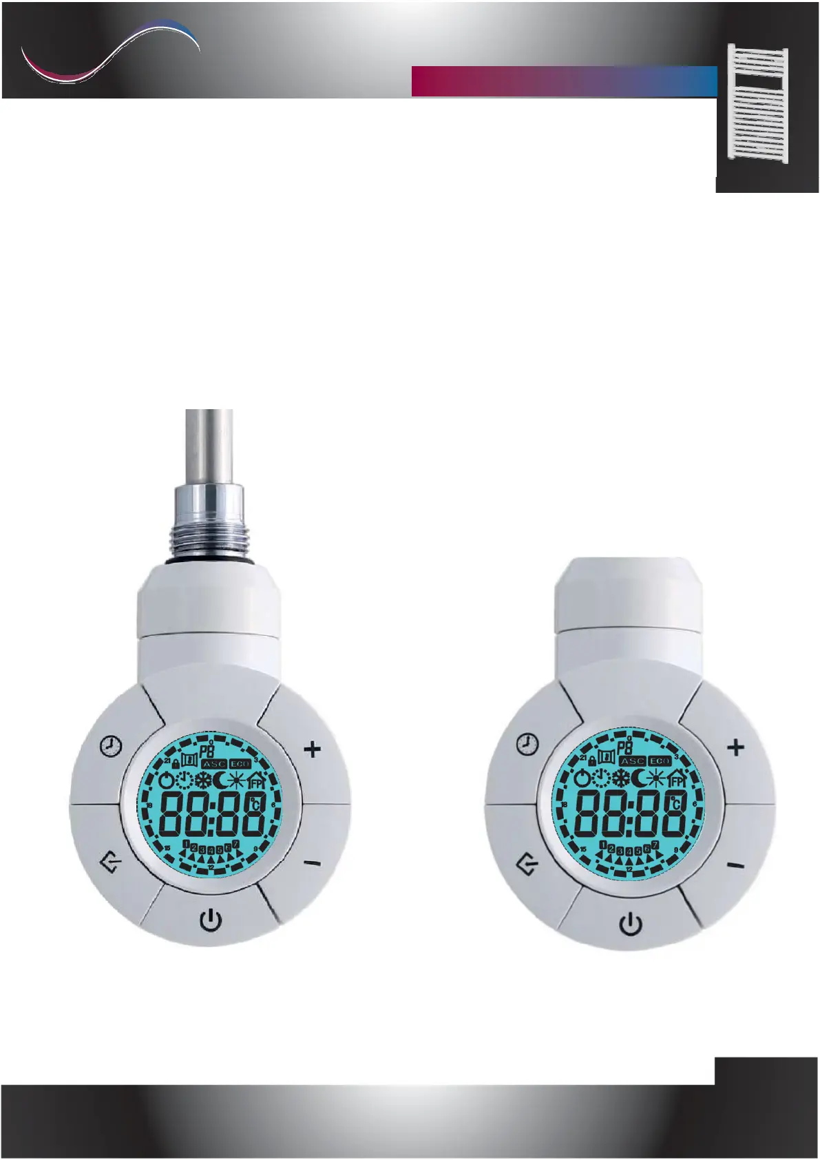 The thermostat is supplied in 2 different versions; in the first version on the lower left, the heating