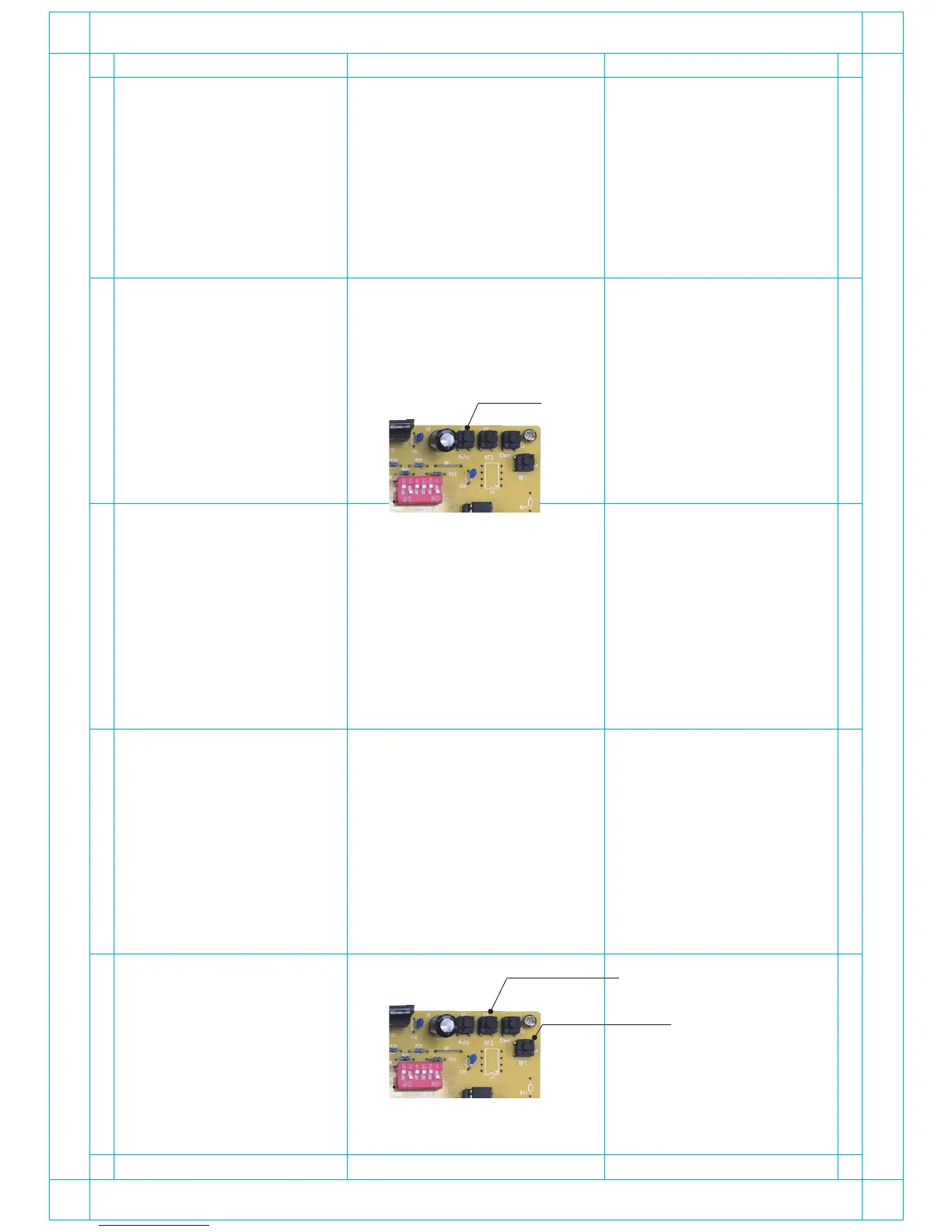 - Proceed with “RF1” key on the PCB and another key on the remote control as Step 1~3 above.