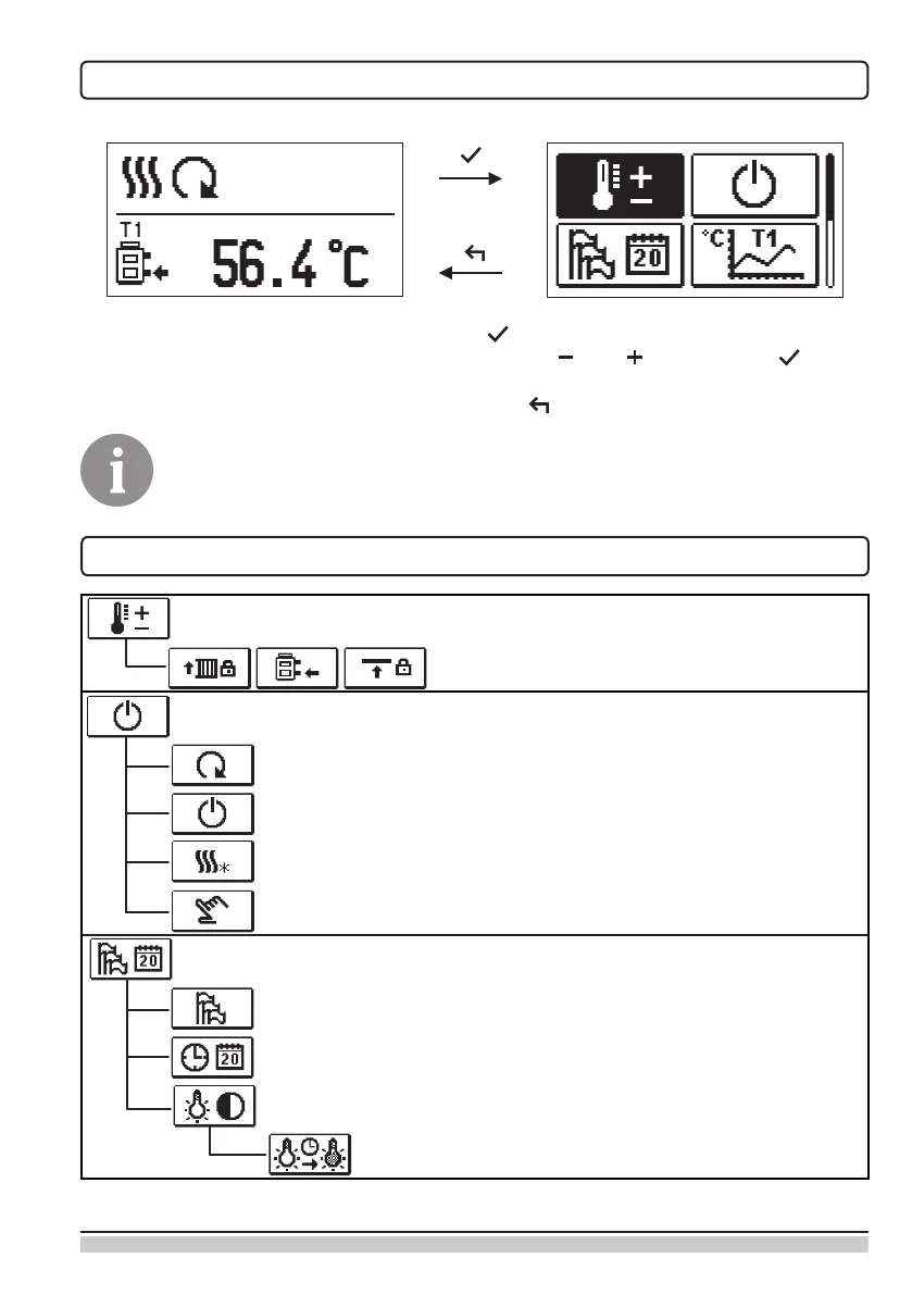 Innerhalb des Menüs bewegt man sich mit den Tasten und , mit der Taste bestä-