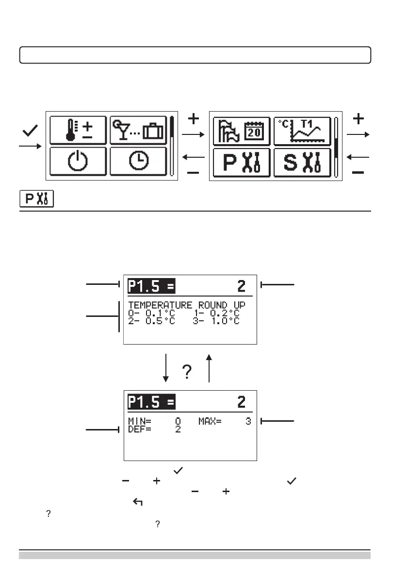 User parameters are arranged in groups P1 – general settings, P2 – heating circuit settings