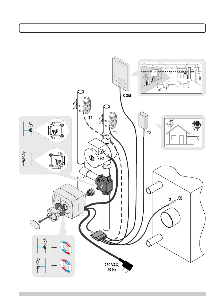 Install the controller with the supplied tools directly onto the mixing valve.