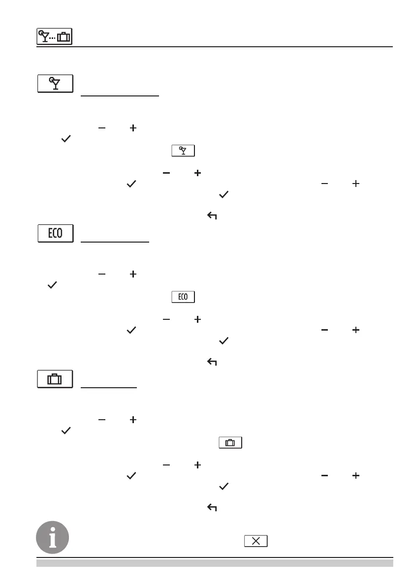 Taste . Für das Einstellen der Ablaufzeit der Funktion und der gewünschten Temperatur