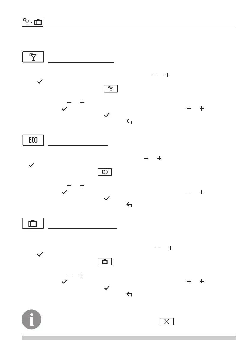 La funzione Vacanze viene impostata con i due pulsanti e , da confermare con il pul-