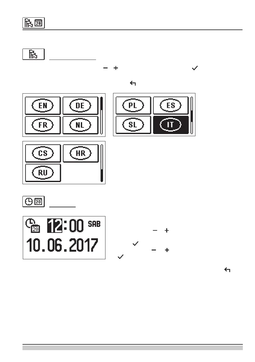 Il menù consente l’impostazione della lingua, della data e dell’ora del display.