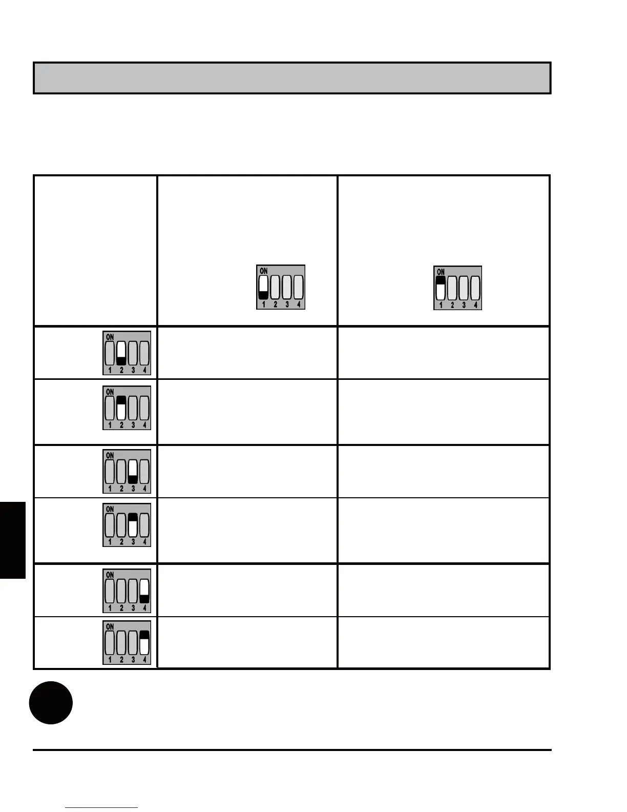 Le réglage par défaut est OFF tous les commutateurs.