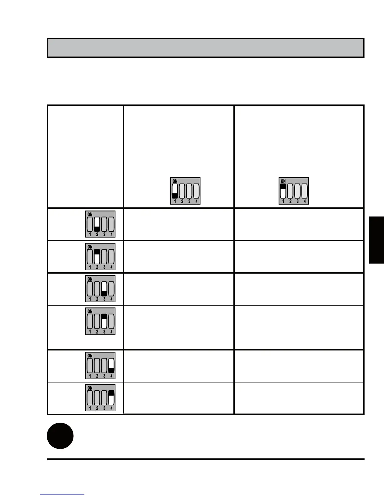 Impostazione predefinita di tutti i interruttori è OFF.