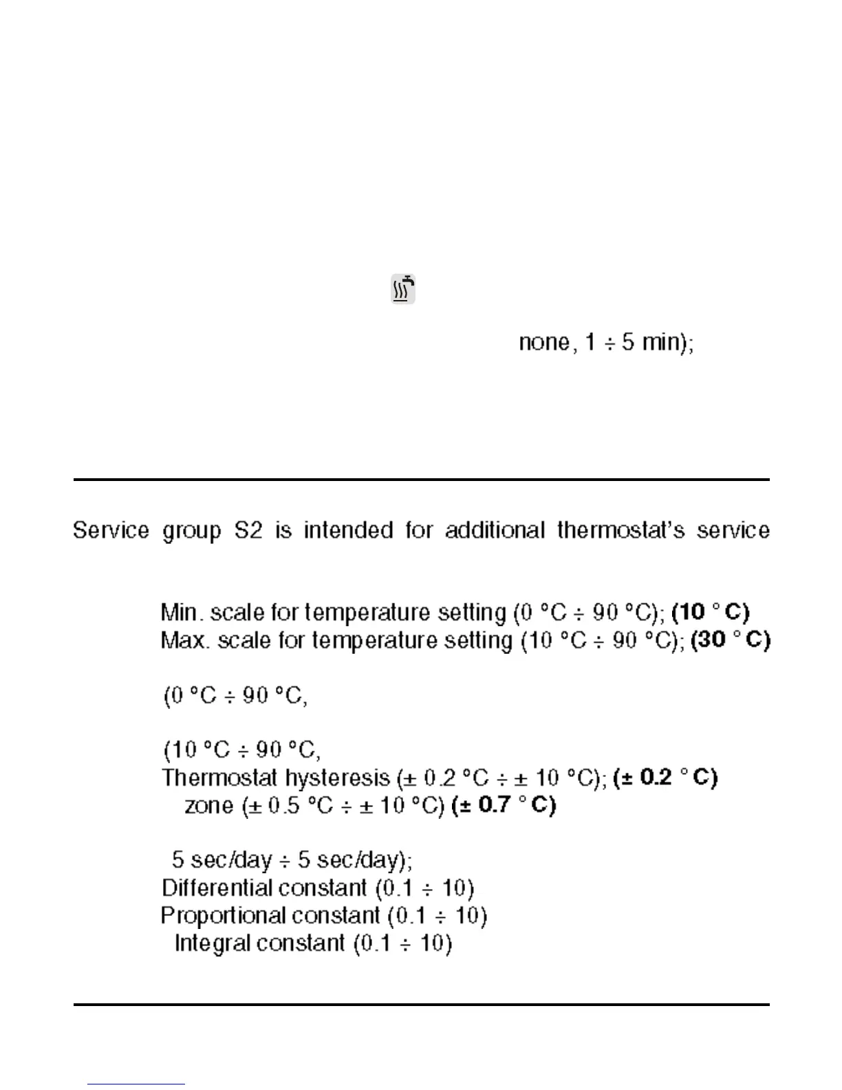 settings. In program group S2 are the following parameters;