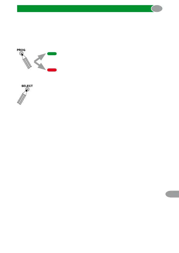 PROG toets gedurende 1 sec. ingedrukt houden. Als de status LED