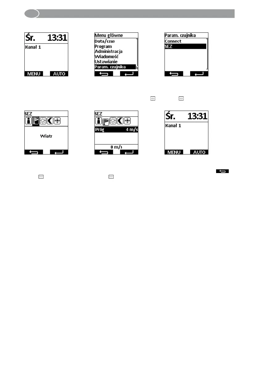 Wartość progowa wiatru: ustawianie za pomocą pilota commeo Multi Send