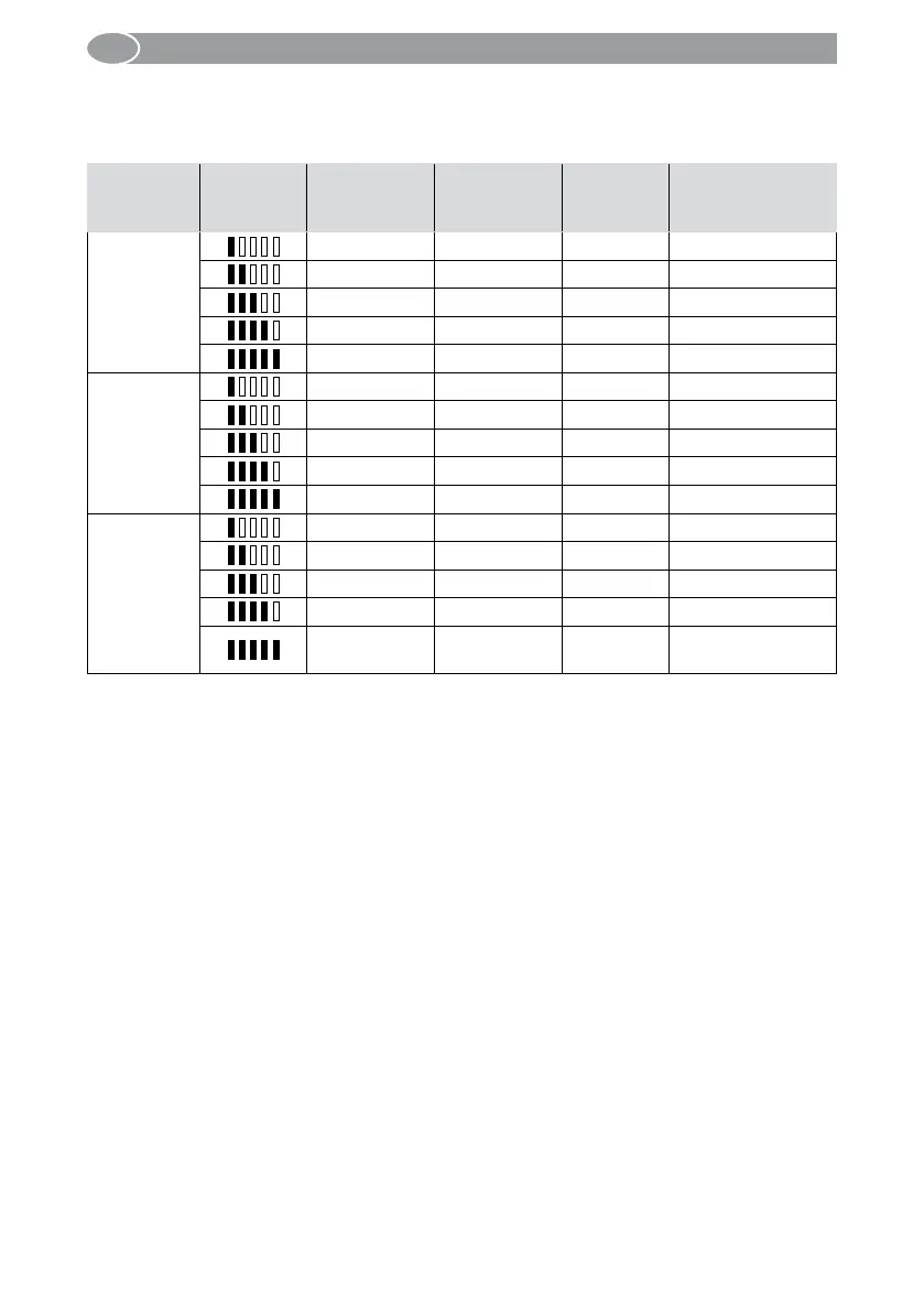 Översikt över vindtröskelanvisningar genom antalet LED i handsändaren. Värdena sparas