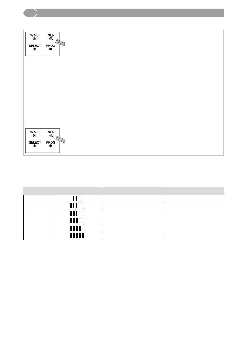 Översikt över soltröskelvärden genom antalet lysande LED i handsändaren.
