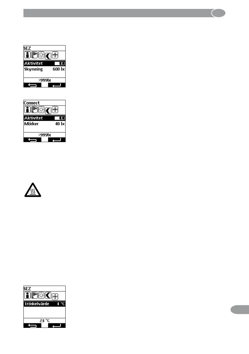 kan tröskeln ställas in vid mellan -15 och +5 °C. Om det mäts upp temperaturer som