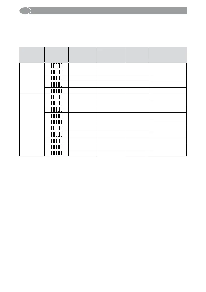 Übersicht zur Windschwellenanzeige durch die Anzahl der LED an dem Handsender. Die
