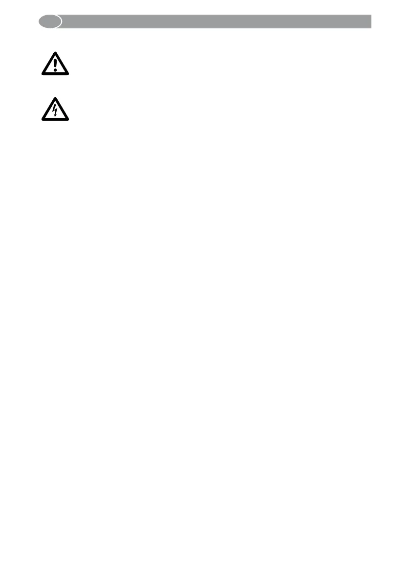 • Risk of injury through an electric shock.