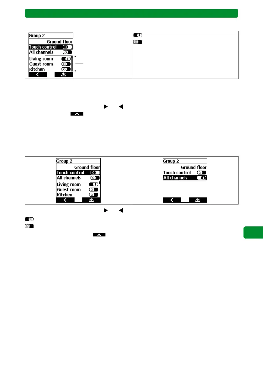 Use the “All channels” function to activate all channels allocated to the group at once. Once