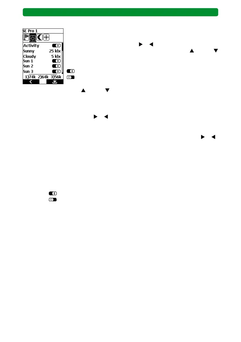 (up) and (down) to set the values for “Sunny” and “Cloudy”