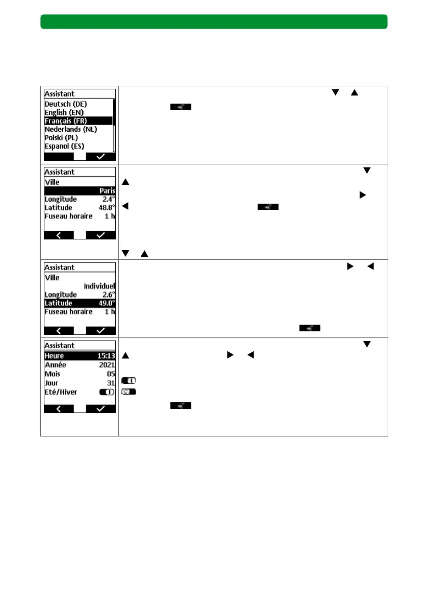 sélectionner l’élément de menu « Longitude » en utilisant les touches