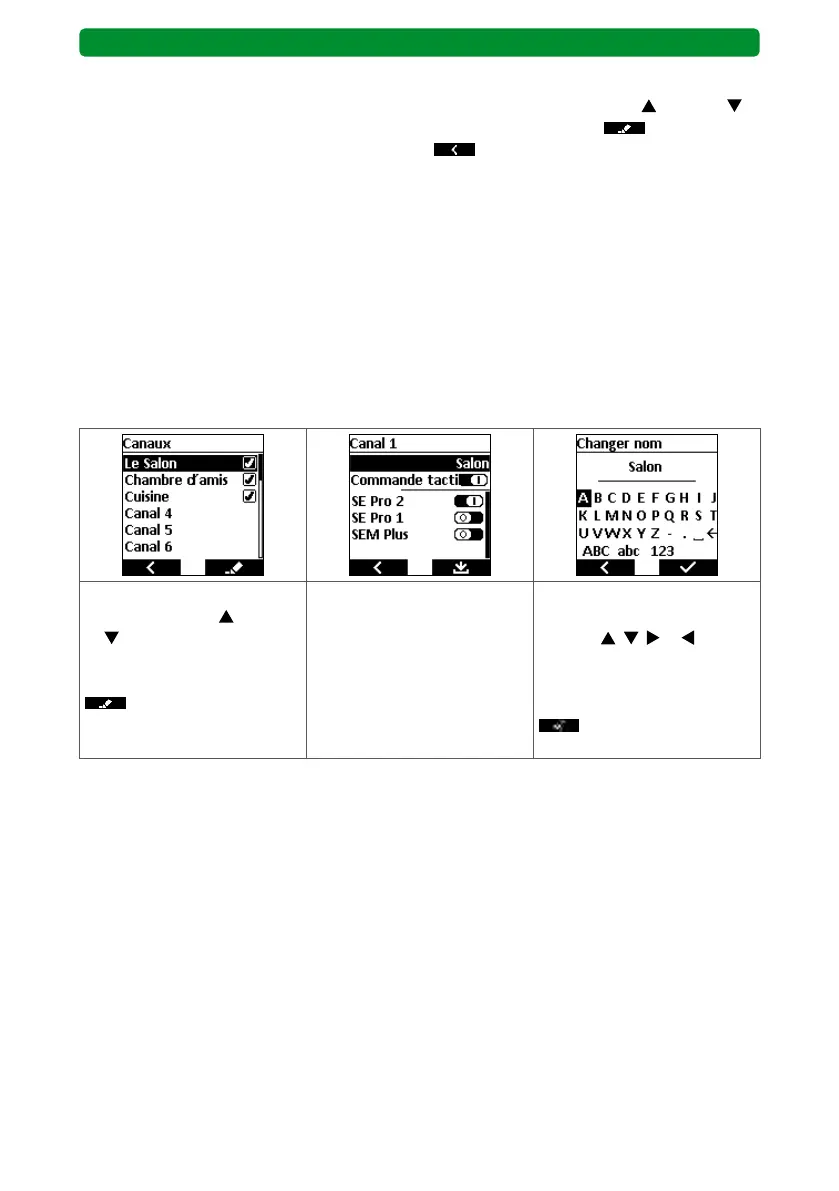(bas) et passer dans le menu « Canaux » avec la touche droite de l’écran . Retourner au