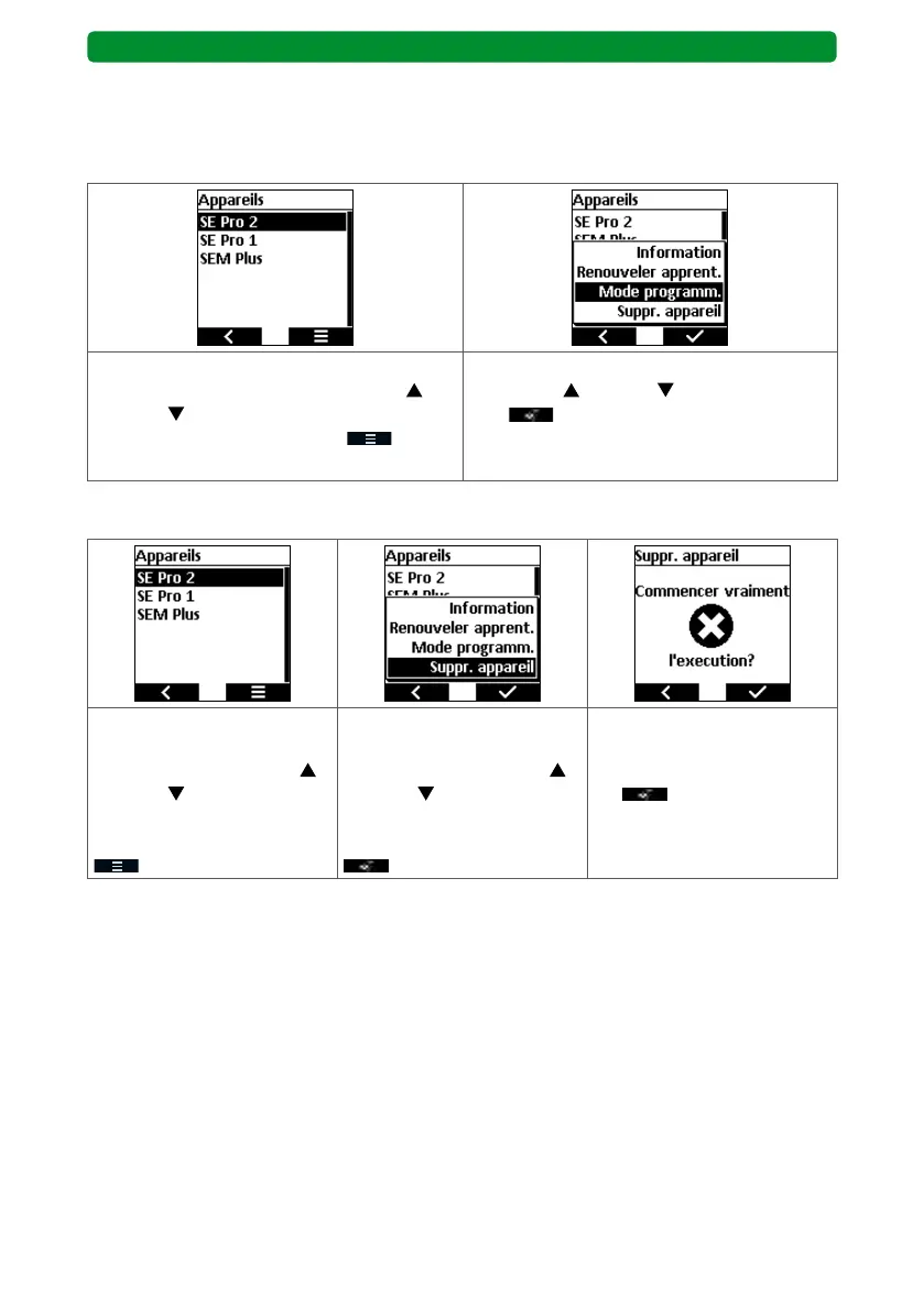 en appuyant pendant 3 secondes sur la touche SELECT. Les nouveaux appareils trouvés sont