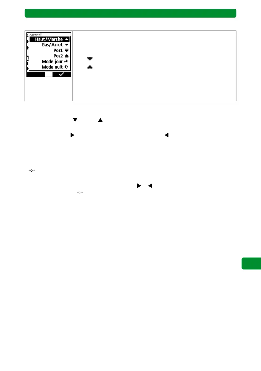 Bas/Arrêt : La destination est la position finale inférieure (fermé).