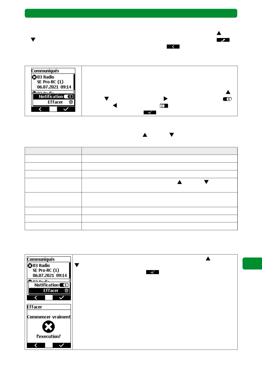 et (bas) et passer dans le menu « Communiqués » avec la touche droite de l’écran .