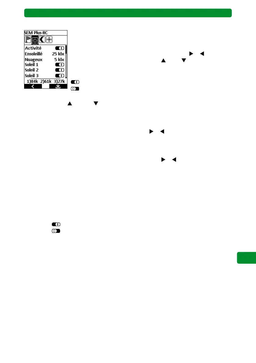 (haut) et (bas) pour naviguer entre les valeurs pour « Ensoleillé »,