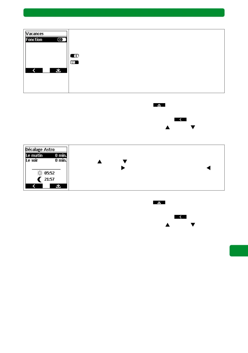 Ici, la fonction « Vacances » peut être activée ou désactivée.