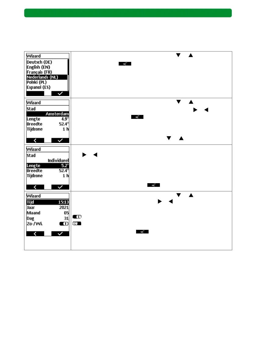 nemen. Op het display boven verschijnt ‘Wizard’. U moet de wizard vanaf het begin helemaal