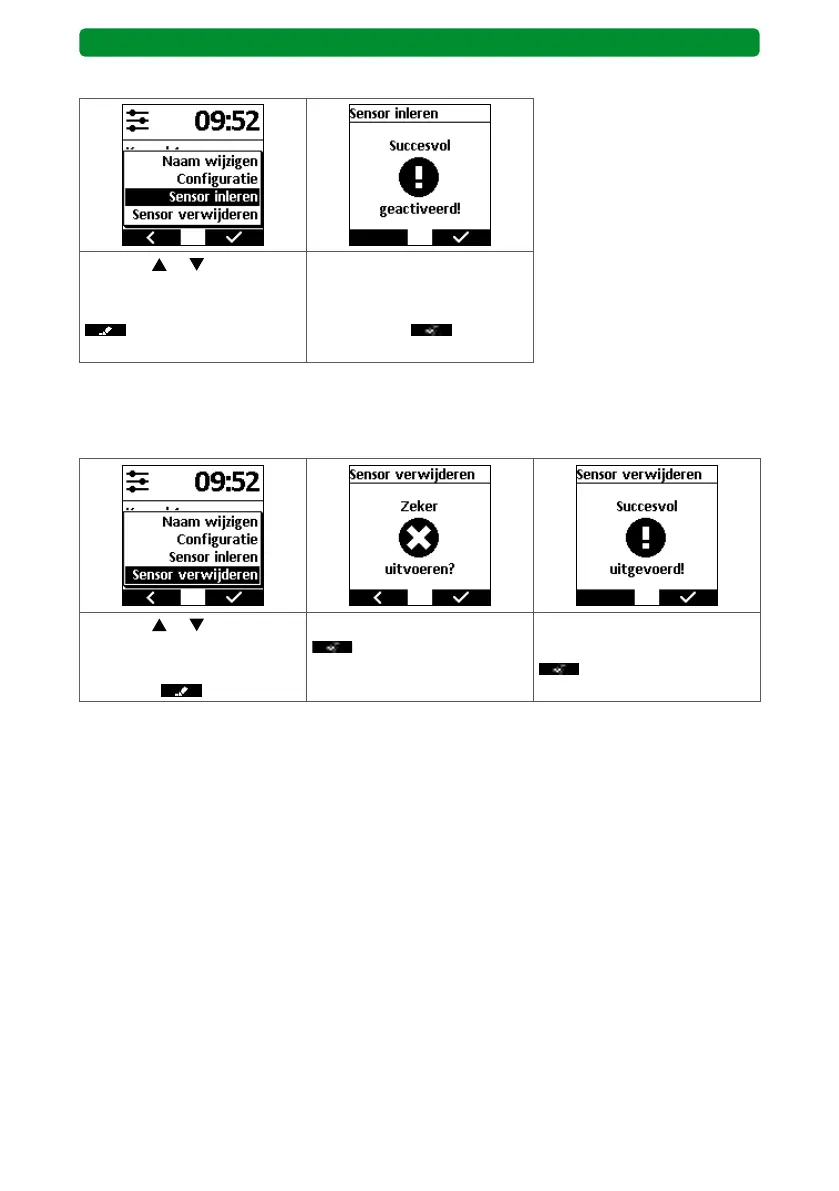 Opmerking: de sensor moet nu met de gebruikelijke procedure worden aangemeld (zie