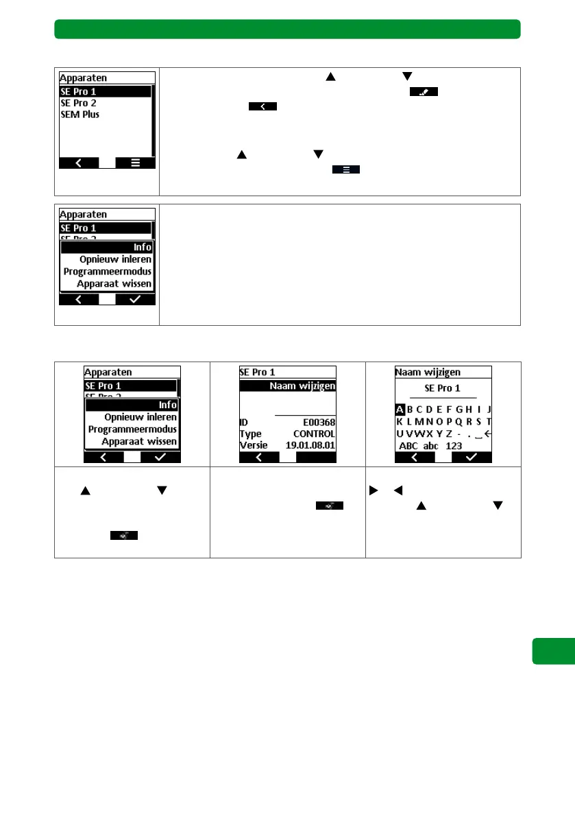 ‘Apparaten’. Met keert u zonder opslaan terug naar het hoofd-
