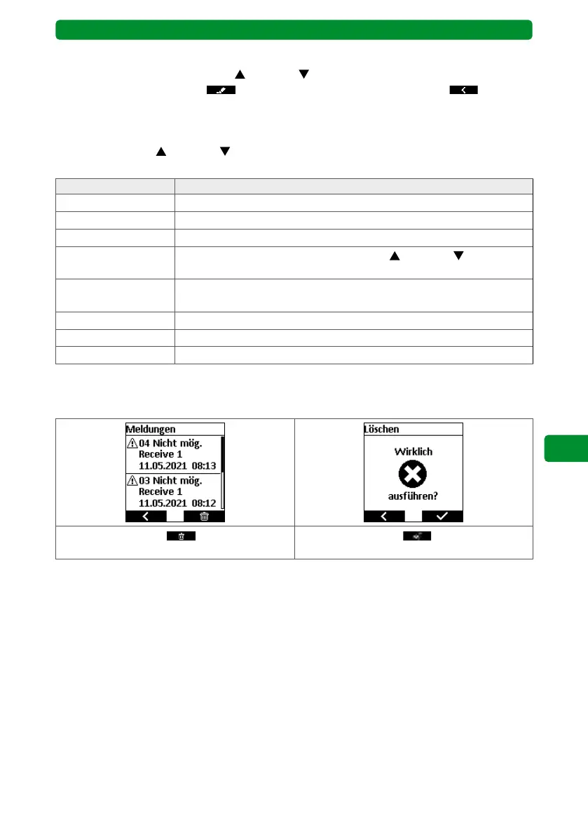 mit der rechten Display-Taste in das Menü „Meldungen“ wechseln. Mit ohne