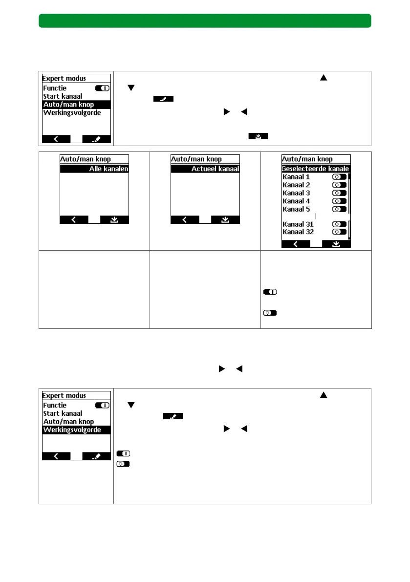 Hier wordt de toewijzing van de kanalen vastgelegd die bij de omschakeling van handmatig