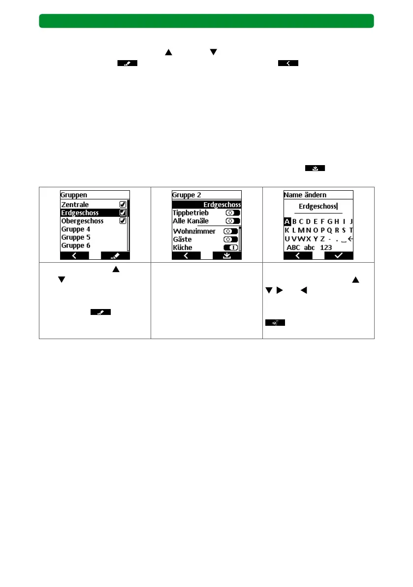 Zur Änderung eines Gruppennamens immer mit der rechten Display-Taste