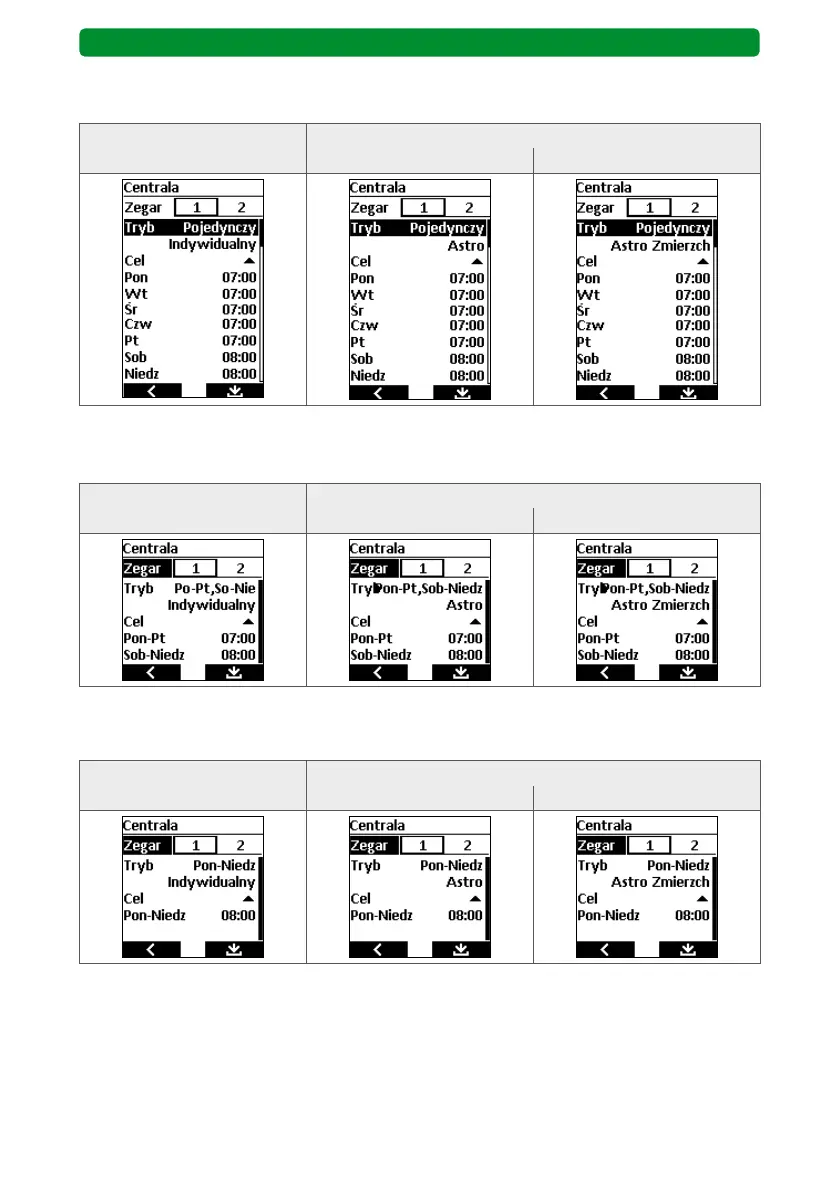 15.4.10. Wprowadzanie czasów załączenia/blokady: tryb pon–pt i sob–niedz