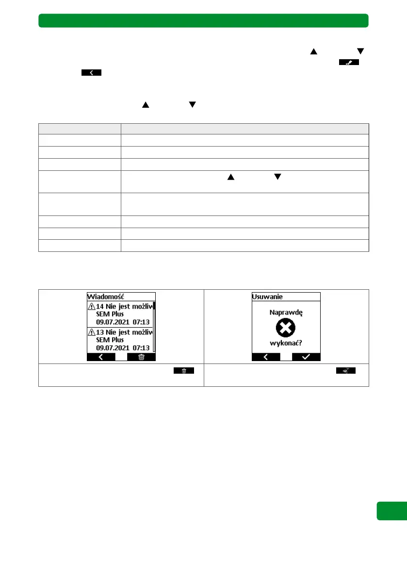 (na dół) i przejść do menu "Wiadomości" za pomocą prawego przycisku wyświetlacza .