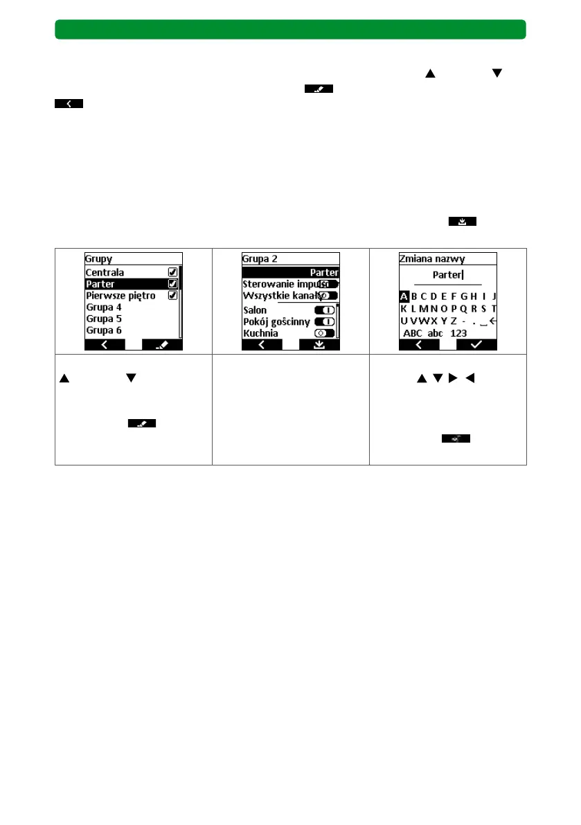 W celu zmiany nazwy grupy zmiany zapisać prawym przyciskiem wyświetlacza