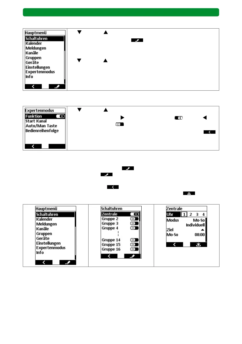 Menü. Im Menü der Zentrale oder der Gruppe mit der rechten Display-Taste die geän-