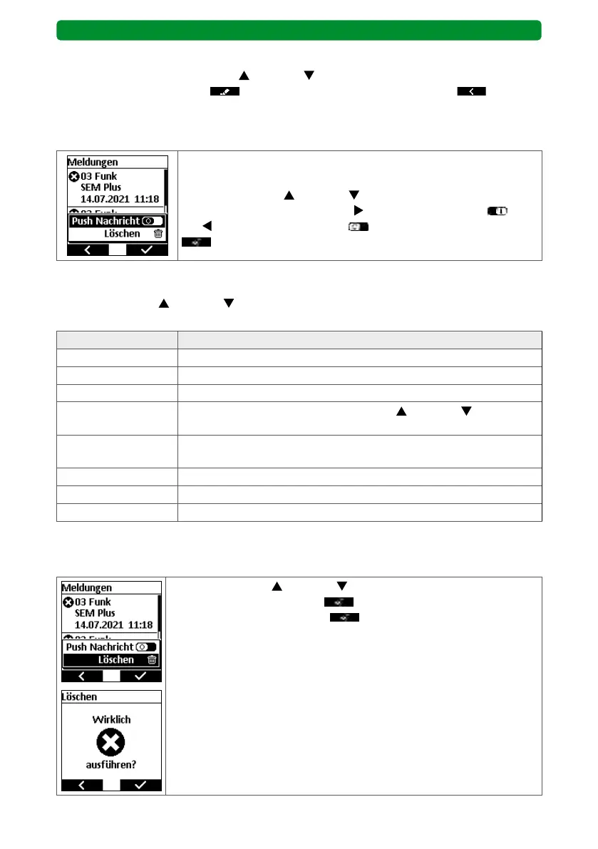 mit der rechten Display-Taste in das Menü „Meldungen“ wechseln. Mit ohne