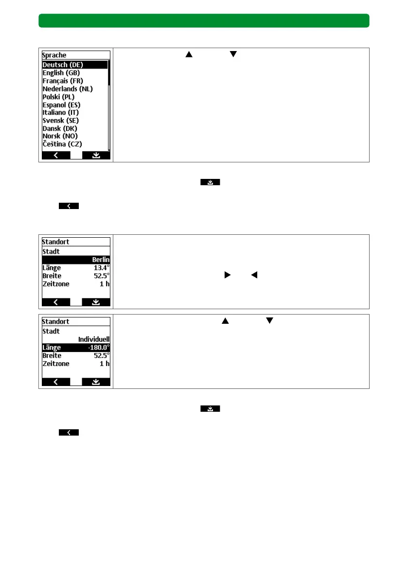 Mit den Fahrtasten (Auf) und (Ab) die gewünschte Landessprache
