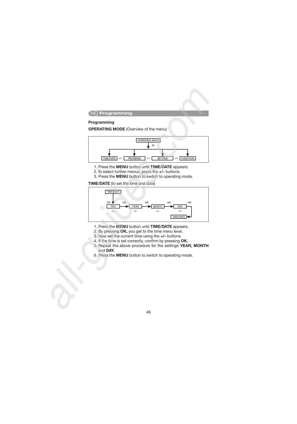Selve i-R Multi Send - Programming Operations; Operating Mode Menu Overview; Setting Time and Date