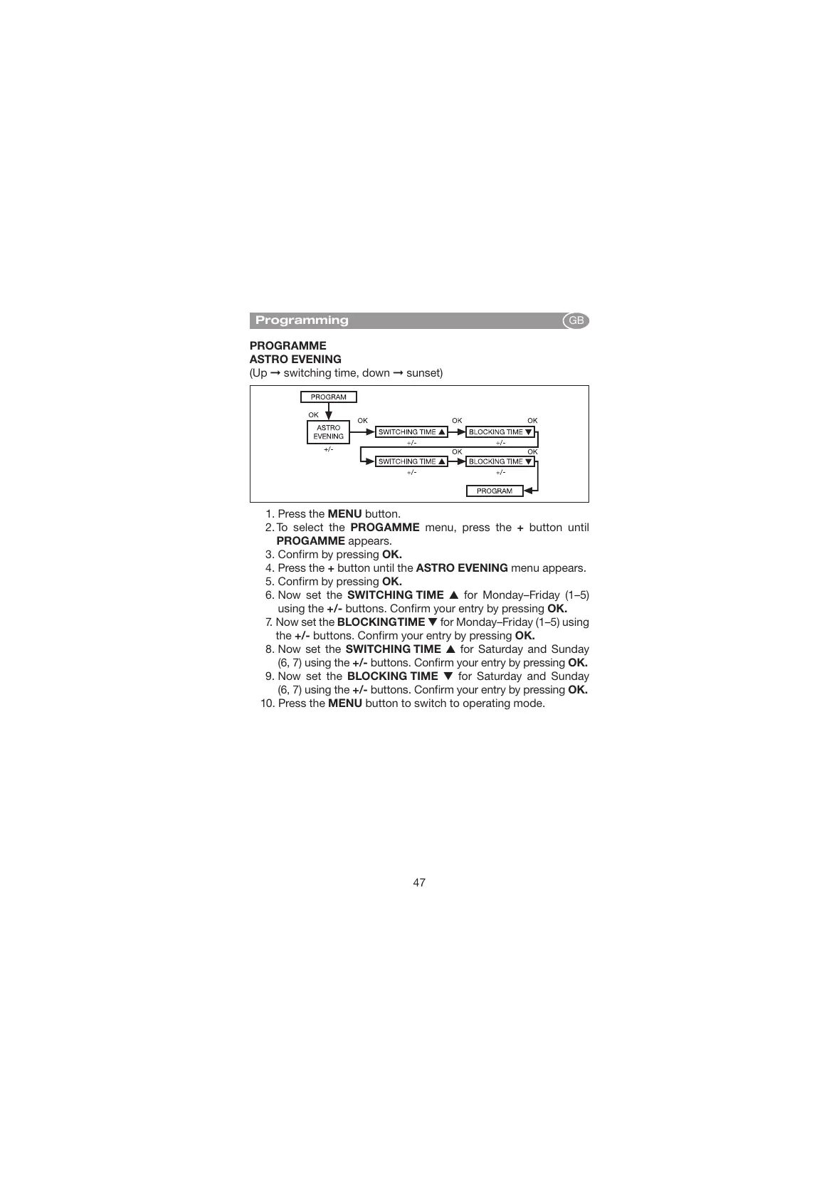Selve i-R Multi Send - Astro Evening Programming; Programming Astro Evening Times