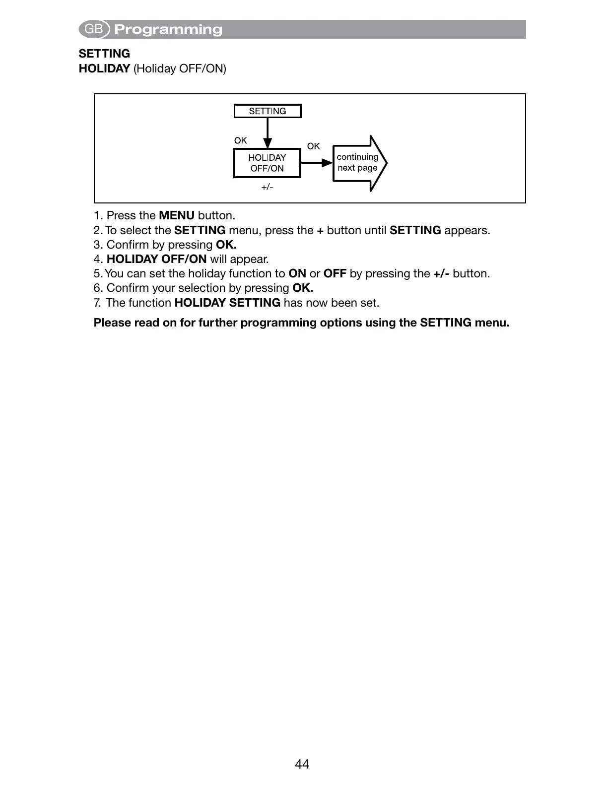 0LEASEREADONFORFURTHERPROGRAMMINGOPTIONSUSINGTHE3%44).'MENU