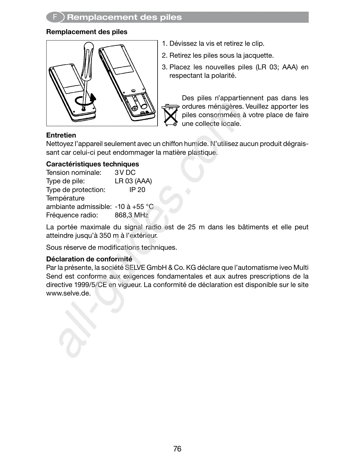 Remplacement des piles