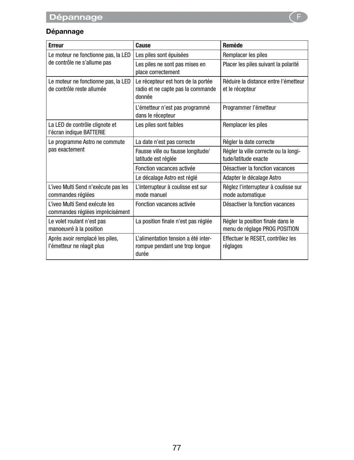Les piles sont épuisées Remplacer les piles
